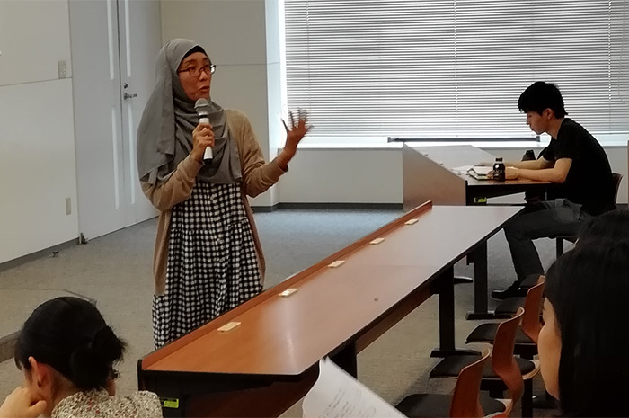 このため、授業の中ではほぼ毎週、みなさんに文献を読んで予習をしてきてもらい、それにもとづいて少人数グループでディスカッションをしてもらうということをしています。また、マレーシアのムスリムの大学生とインターネットでつないでライブで質疑応答をしたり、今学期はちょうど前半が断食月にあたっていたので、東京ジャーミイでのイフタール(断食明けの食事)と講演会に10人くらいずついくつかのグループに分かれて参加してもらうなど、直接ムスリムと関わってもらう機会を作っています。「聞いているだけ」ではないので学生の方々には大変なところもあるとは思いますが、イスラームについてニュースなどで見聞きする事柄がいかに限られているのか、ムスリムの視点でみるとこう見えるのか、といった、新しい見方をする実感を得てもらえたらと思います。